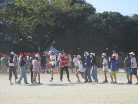 また、8日には、スポーツ市民の祭典が、延命の陸上競技場にて行われます。4年生以上が長縄やリレーに参加します。朝の時間や休み時間に練習を頑張っています。さずがたくましい子のスーパースターです。