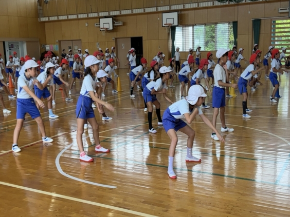 中学年も運動会の練習が始まりました。初回にも関わらず、真剣に話を聞く時としっかり体を動かす時、休憩する時のメリハリがついており、とても感心しました。 子供たちからは 「ゆっくり動くところが大変」 「速くて難しいけど楽しい!」 などの声が上がり、緩急のついた踊りの難しさや、できた時の楽しさを感じていることがわかりました。 達成感を実感できる子供を目指して、1ヶ月後の運動会に向けて1歩1歩前進しています。