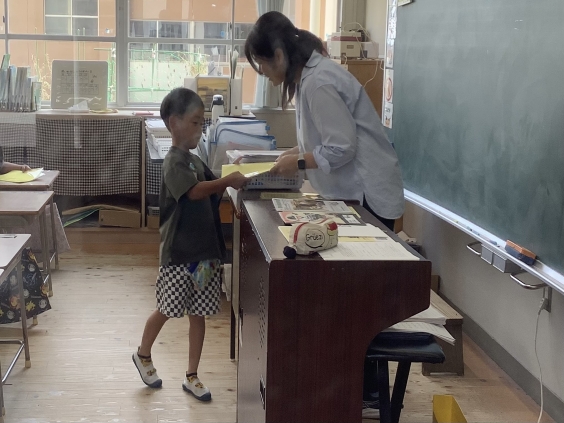 各学級では通知表が渡されました。子供たちは自分が頑張れたこと、もっと頑張れそうなことを、通知表を通して確かめて後期に繋げます。お家の方からも励ましの言葉を頂ければ幸いです。