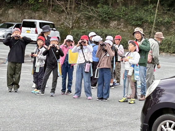 11月11日(火)、4年生は総合的な学習の時間「自然観察ウォッチング」の学習で、春・夏の調査を基に、秋の延命公園に行きました。9名の講師の方に来ていただき、「植物」「野鳥」「水辺の生き物」「昆虫・樹木」の4つのグループに分かれて、延命公園を散策しました。