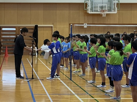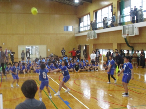 11月12日(水)の午後、1〜5年生の応援を受け、6年生の宅峰中学校区親睦球技大会が行われました。本年度は宅峰中学校の体育館を借り、中学1年生になる来年に向けて、3校の6年生が集まりました。