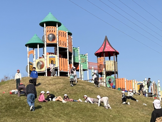 公園では、お弁当を食べたり遊具で遊んだりしながら楽しく過ごしました。普段の昼休みとは違い、1年生と6年生がペアで行動したり、大きな遊具に挑戦したりして、遠足ならではの過ごし方をすることができました。