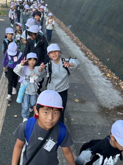 11月21日(金)は1・2校時にチャレンジ集会を行った後、諏訪公園を目指して秋のさわやか遠足に出発しました。とても楽しみにしていた子供たちの気持ちに応えるように、さわやかな秋晴れに恵まれた1日となりました。学校からは長い道のりでしたが、交通ルールに気をつけて無事に公園に着くことができました。
