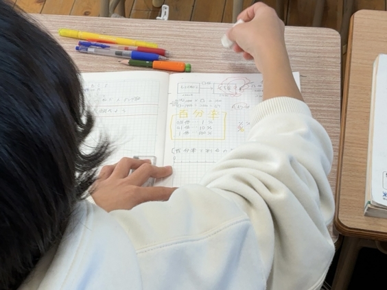 5年生が算数科で「割合」の学習に取り組んでいます。この日は割合を百分率で表す学習でした。