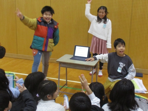 4年生にとっては、一生懸命準備したものを同じくらい一生懸命に聞いてもらえたことで、とても充実感のある学習になり「かしこい子のスーパースター」として成長していました。3年生は、話の聞き方がとても上手な「やさしい子のスーパースター」でしたね。来年の学習を楽しみにしましょう。
