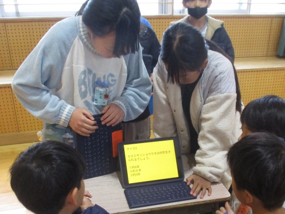 4年生は、これまでたくさん話し合って工夫を凝らしてきたクイズや作品を3年生に見てもらうことで、とても気合が入っていました。3年生は、4年生の発表にワクワクしながら会場に来ましたが、いざそれぞれのグループの話を聞くときには真剣な目で身を乗り出して聞いたり、競い合いながら手を挙げて答えたりしていました。