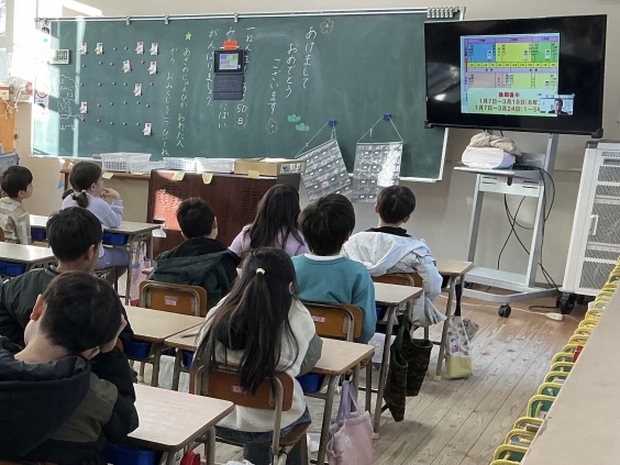 1月7日(水)に令和7年度の後期後半が始まりました。朝の気温が低い中でも、元気に登校して友達と再会を喜び合っている姿が印象的でした。体育館に全員集まりたかったところですが、寒さや各種感染症等、子供たちの健康を考慮し、各教室にオンラインで配信しての全校朝会となりました。