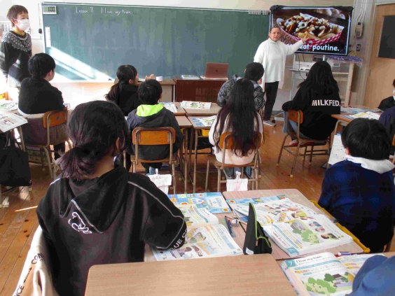 1月13・14・15日に、外国語の学習で、ALTのリンダ先生に来ていただきました。14日の2時間目に5年1組の授業を見に行きました。 5年生の「I love my town」で、町のすてきなところを紹介することをねらいとして、リンダ先生の故郷カナダのすてきなところを紹介していただきました。子供たちは、カナダの大きさや名物の食べ物や施設についての紹介を興味津々で聞いたり、紹介の時に使う会話を意欲的に発音したりしていました。 今後、大牟田のすてきなところを紹介できるように頑張ってほしいと思います。