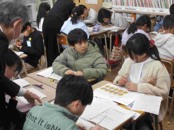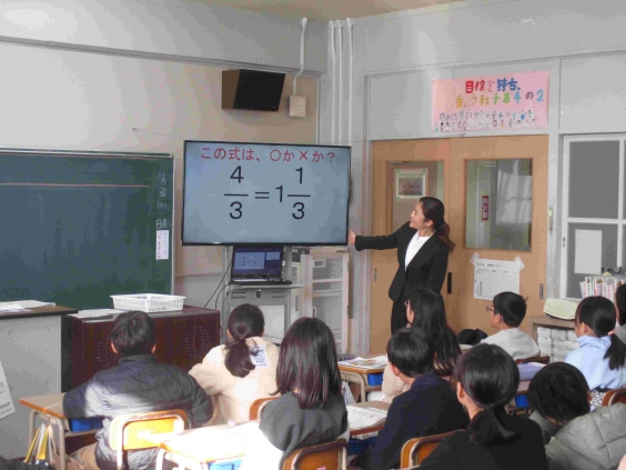 1月20日(火)2時間目に、4年2組で算数「分数」の授業が行われました。この授業のねらいは、分母も分子も違う大きさが同じ分数にあることを知り、日常生活の中に見出すことができるようにすることです。子供たちは意欲的に、課題解決のために取り組むことができていました。そして、等しい分数について、数直線や絵、面積図などから探す活動を通して、生活の中にある等しい分数について気付くことができていました。 4年生の後期は、5年生に向けた0期です。この調子で、高学年に向けて挑戦し続けてほしいと思います。