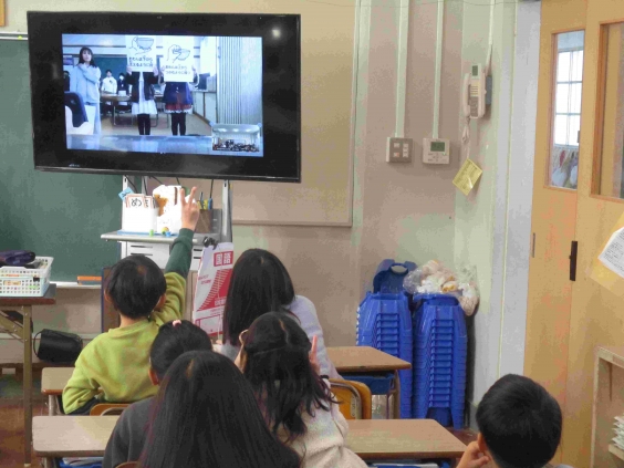 1月29日(木)に、給食委員会によるなかよし集会が行われました。今日は冷え込みが厳しかったのでZOOMで行いました。給食委員会の子供たちは、給食の歴史について説明したり、給食に関するクイズを出したりしてくれました。また、給食の食器の安全な運び方も確認しました。