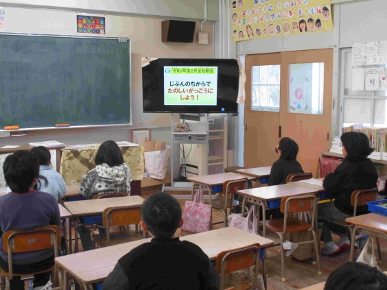 インフルエンザなどの感染症に感染している子供たちが増えてきているようです。そのため、2月の全校朝会をZoomで行いました。
