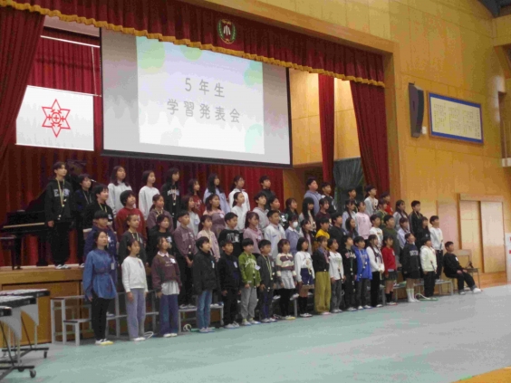 5年生は、テーマ「未来への備え、明日への響き」で、防災・減災について学んだことを自分事として考え、それを発表しました。また、「こげよマイケル」では、美しい3部合唱ができました。