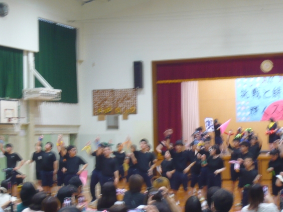 高等部では、第一部で「凱旋行進曲」の合奏と「地球星歌」の合唱を、第二部で各作業班ごとの発表、第三部でダンスを披露しました。
