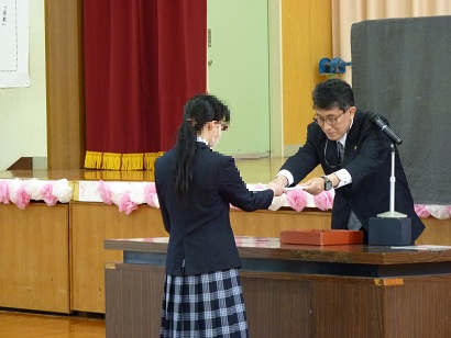 令和7年度の修了式を行いました。式では代表児童生徒に修了証が手渡され、この一年間の努力が確かな形となりました。 また、式の中では「一年間頑張ったこと」の発表もありました。大勢の前で自分の頑張りを堂々と話す姿は、年度初めよりもずっと頼もしく、成長が感じられました。家庭での温かなサポートがあったからこそだと感じております。一年間、ご協力ありがとうございました。
