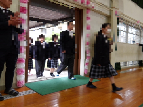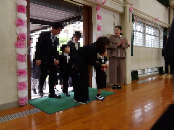 入場時は、緊張した様子が見られましたが、校長先生やPTA会長、児童生徒代表のあいさつで「入学おめでとうございます」のお祝いの言葉をかけてもらうと、うれしそうに笑顔を見せてくれました。