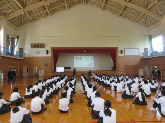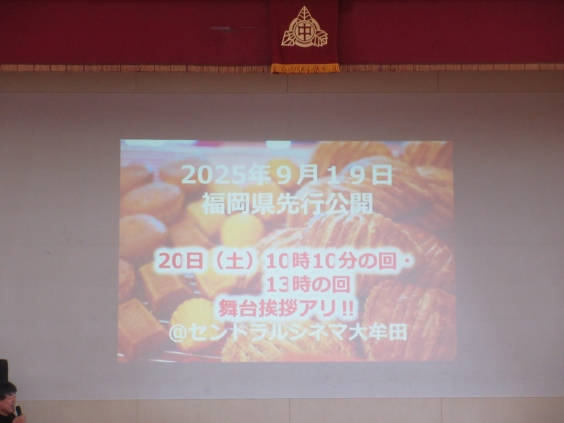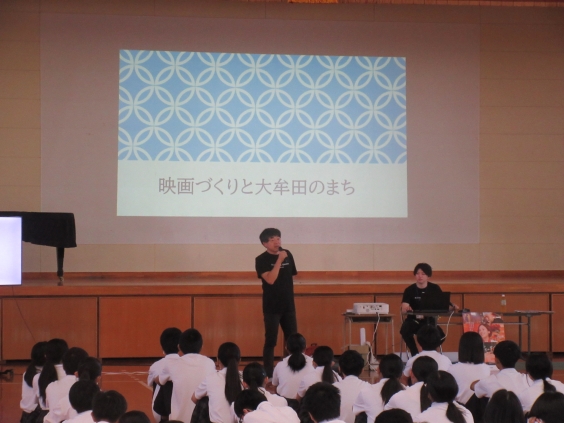 2年生総合学習の「職業人に学ぶ」で、本日から上映されます映画「オオムタアツシの青春」の瀬木直貴監督に来ていただき映画監督という職業についてお話をしていただきました。