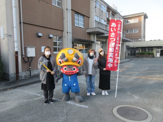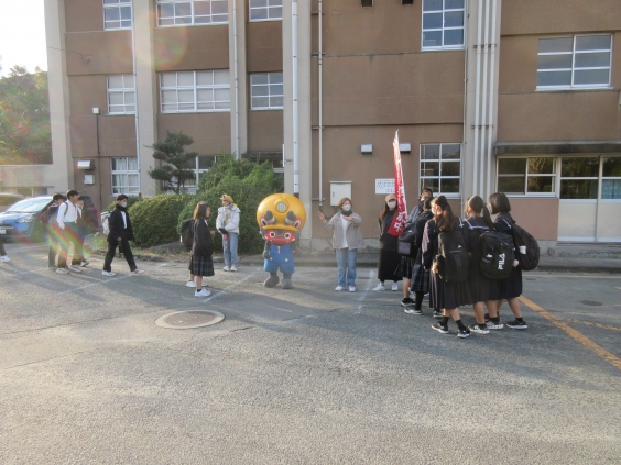PTAあいさつ運動を実施しました。今日は、ジャー坊が来てくれました!