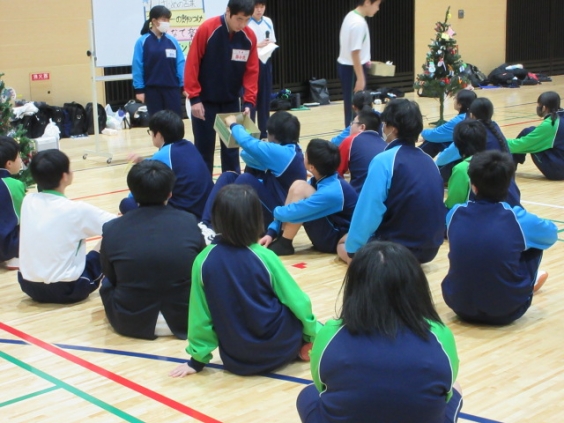 他校の生徒と共にゲームやクリスマスプレゼントの交換など楽しく過ごせました。