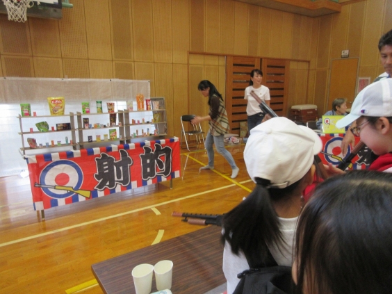射的やストライクアウト、ダーツ、千本引き、お菓子すくい、スリッパ飛ばし、コイン落としなどの楽しいコーナーを作成していただきました。子どもたちも笑顔いっぱいでした。