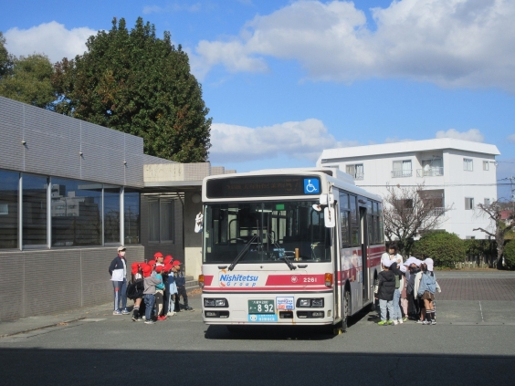 正しいバスの乗り方やバスの中でのマナー、バスの運転手さんの仕事などたくさんのことを学びました。子どもたちは真剣に話を聞いていました。