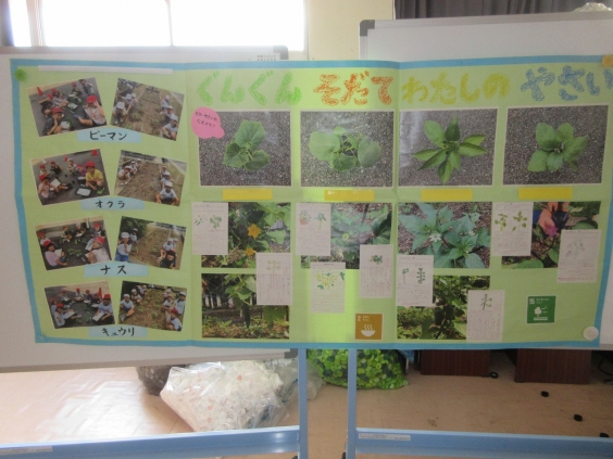 今日は、ユネスコスクール記念集会が行われました。 各学年のSDGsの取組について紹介されました。 各学年が取り組んだパネルは、特別活動室に展示してあります。 今日は、低学年の紹介をします。 写真にあるように、1年生は、「楽しい秋いっぱい」です。自然に親しみ、たくさんの秋をみつけました。 2年生は、「野菜を育てよう」の取組です。大切に野菜を育て、その様子を詳しく観察しました。