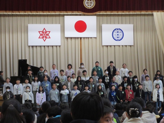 4年生は、二分の一成人式から考えたことをテーマに、4年生の成長について紹介がありました。「チャレンジ」の歌や「星に願いを」などの合奏もみんなが集中して頑張りました。子どもたちの成長を感じました。
