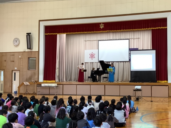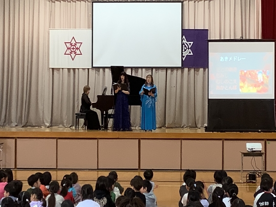 今日は、体育館にて音楽鑑賞会を行いました。今年度は、大牟田市まちの芸術家派遣事業を利用し、「大牟田音楽家協会」の皆様に依頼させていただきました。ピアノの演奏、フルート、歌唱など幅広いジャンルの音楽を1〜3年生、4〜6年生の部に応じて披露していただきました。アンコールとして「さんぽ」「小さな世界」など子供たちが知っている曲も演奏して一緒に歌いました。芸術の秋、楽しい時間はあっという間に過ぎていきました。