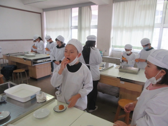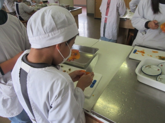 今日は5年生が福岡県の農林水産部地産地消推進係から寄付していただいた柿で皮むき体験をし、柿をみんなでおいしくいただきました。はじめは柿が「苦手」と答えていた子供たちからも食べてみて、「甘くておいしい」という感想が聞かれました。地産地消のよさに気づくことができるよい体験になりました。