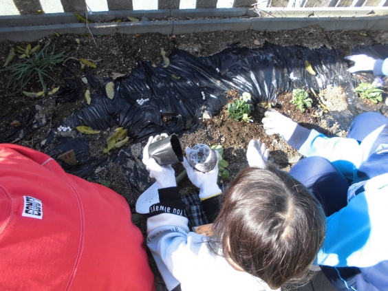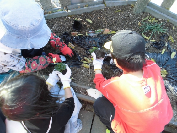 12月12日(金)、地域の方、松原中学校の生徒、大正小学校の児童でコミュニティセンターの花壇に花を植えました。地域の方が使うコミュニティセンターの花壇が花でいっぱいになり、また一つ地域とのつながりを実感することができたすばらしい時間になりました。