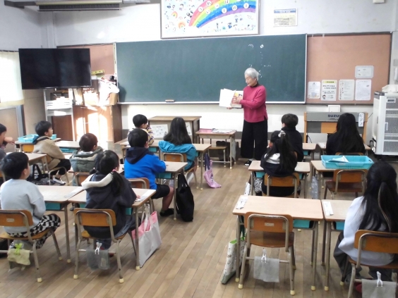 本日(1/14)、新年が始まってはじめての読み聞かせがありました。 絵本の読み聞かせ、紙芝居などいつも学年の実態に応じて工夫していただいているので、どのクラスも本の世界にどっぷりと浸ることができました。「てぶくろをかいに」「11ぴきのねことあほうどり」「十二支のはじまり」など、楽しい本ばかりでした。ありがとうございました。