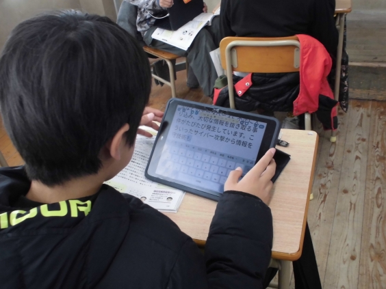 本日(2/2)、5年生の社会科で自分たちのくらしとICTの変化について考えました。 いくつかの資料には「選べる働き方」「情報サービスにつく人の数の変化」「情報量の変化」「個人情報の流出の手紙」「不安に感じること」がありました。子供たちはこの資料をグループに分かれて読み取っていきました。振り返りで「情報がたくさんある世の中だから自分に必要な情報を見分ける力が必要だと思いました。」と書きました。今回の学習が自分事として考えられていることに深い学びがありました。