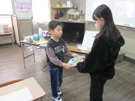 本日(3/16)、6年生から「卒業記念品」として、手作りの教室プレートをいただきました。