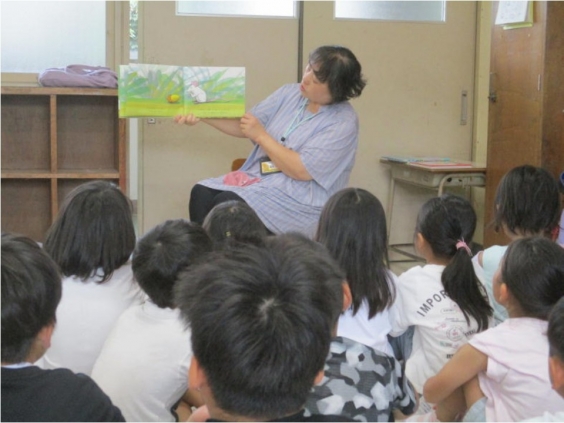 毎月一回朝の活動の時間に、読書ボランティアやすらぎの森の皆様から読み聞かせをしていただいています。子供たちはいつも楽しみにしています。 子供たちの表情も本の内容によって笑顔になったり、ぐっと見入る目つきになったりと本の世界に入り込んでいるようでした。 また、クイズなどもあり楽しんでいました。 読書が好きな子が増えてきているようです。