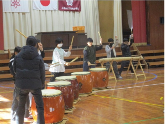高取小学校では、20年ほど前から絆太鼓に取り組んでいます。 そこで、本年もその伝統を受け継ぐべく、6年生が太鼓の練習を始めました。 GTの方から、構え方やばちで太鼓を叩くときの手の動かし方などの基本的なことから教えていただきました。 腰を落として、叩くだけでも太鼓の響きが力強く変わっていました。 これから練習を重ねていき、6年生のみんなとの絆を深めていくとともに、演奏できるようにすることでこれまでの先輩との縦の絆もつくっていきたいと思います。