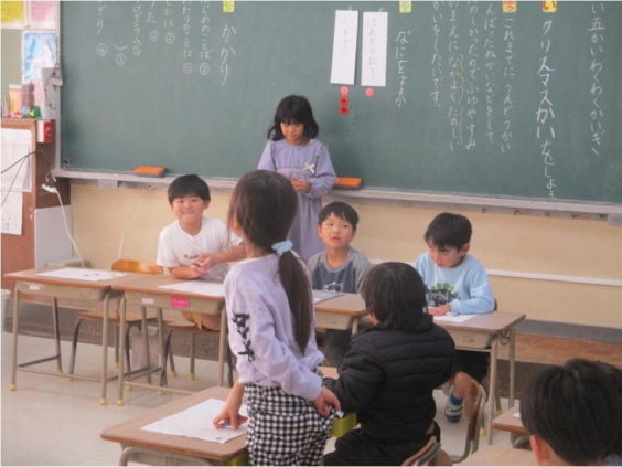 1年生は学級活動の時間に学級会を行いました。 議題は「クリスマス会をしよう」です。その提案理由は、「これまで運動会やそのがんばったね会をして楽しかったから、冬休みの前に仲良く楽しい会をしたい」ということでした。 「仲良く」「楽しく」をキーワードにしながら会ですることを考え、出し合いました。自分の考えに理由をつけて話すこともできていました。 そして、自分たちでする内容と役割まで決めることができました。 どんなクリスマス会になるのか楽しみです。