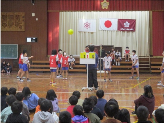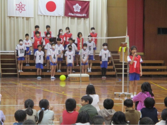 御木中学校区親睦球技(バレー)大会が開催され6年生が出場しました。 そのため、朝の活動の時に5年生が中心となって下級生による応援会が行われました。 下級生から元気のいい応援がなされ、6年生のみんなの顔も引き締まったようでした。 また、6年生からも応援に対するお礼と大会への意気込みが下級生に伝えられ、大きな拍手で包まれました。 最後に6年生がミニゲームを披露し、会場の盛り上がりも頂点に達しました。 おかげで、大会では6年生のチームワークのよさを生かしながらパート優勝をすることができました。