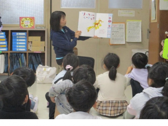 毎月読書ボランティア「やすらぎの森」の皆様に来ていただき、読み聞かせをしてもらっています。 そこで、今日1月の読み聞かせをしてもらいました。 子供たちがお話を楽しめるような本と、考えたりクイズをしたりするような参加型の本を紹介してもらいました。 参加型の場面では、低学年は絵本の中から違いを見つけ出したり、高学年は視覚的に多様な見方をしたりできる内容でした。 子供たちは、とても楽しんでいました。 「やすらぎの森」の皆様、いつもありがとうございます。