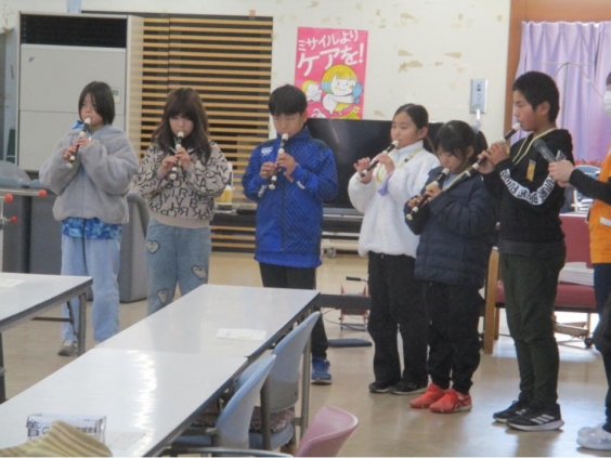 各施設においては「クイズ」や「ゲーム」「あやとり」など、みなさんに楽しんでもらえるような内容のものを準備し交流しました。また、リコーダー奏の披露もしました。