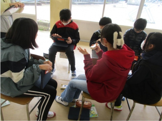 6年生は、LGTのルース先生との外国語の学習も今日で最後でした。 「中学校生活でしたいことやがんばりたいことを伝えよう」という学習で、 子供たちは「I want to join the〜.」というフレーズを使いながら、自分の思いを英語の一文にしました。そして、ルース先生に伝えました。 6年生は、自分の思いの一文をルース先生にほめてもらったり、励ましてもらったりして嬉しそうにしている子もいました。