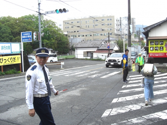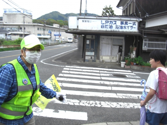 また、春の交通安全県民運動期間中には、大牟田警察署の方にも交差点に立っていただき、登校の安全を見守っていただきました。