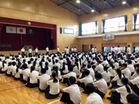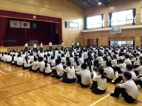 新人大会に向けて、壮行会が実施されました。各部活動の部長が大会に向けての抱負やこれまでの取り組みについて発表をしていました。生徒会長より応援のメッセージが送られていました。校長先生からは、しっかり声を出し合って活躍することができるよう励ましの言葉が送られていました。