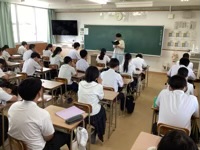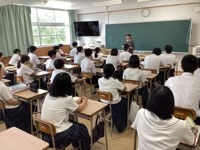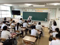 1時間目開始前の朝の時間に、「よむよむの会」のみなさんによる本の読み聞かせやストーリーテーリングが行われました。 今回は、3年生全クラスを対象に短い時間でしたが、対面による読み聞かせということで、生徒たちも真剣な表情で話の内容に耳を傾けたり、朗読をされる方が絵本の内容を基に生徒の皆さんと対話をされたり和やかな雰囲気で聴く姿が見られました。会員の皆様、本日も朝早くからありがとうございました。