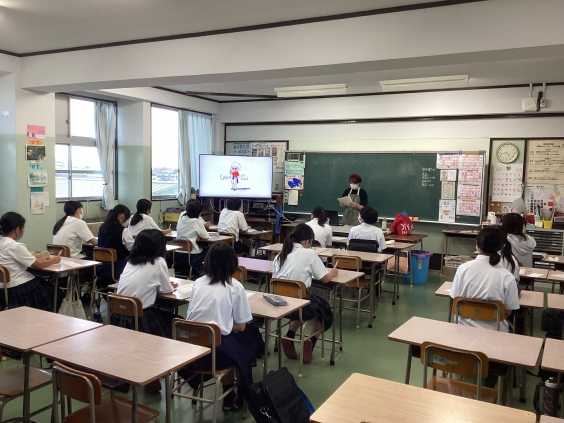 本校卒業生のイラストレーターの方に来ていただき、美術部の生徒へ講話をしていただきました。イラストレータになった経緯や作品の紹介がありました。大牟田市にある身近なイラストもあり生徒も熱心に聞き入っていました。これからの美術部の活動におおいに刺激になっていました。