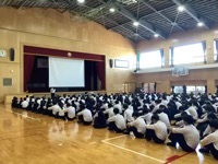 臨床心理士の方を講師に迎えて、心と体の境界線のことで自分や周りの人たちを大切にすることを考える授業が実施されました。まずは、距離や持ち物考え方の境界線について、どんな時がピンチと感じるか考えていきました。そういう時は「いや」と相手に伝えていい その場を離れる、味方になってくれる大人に話していい。境界線を越えるときは、言葉で伝えることで確認するが大切になる。そこから、性の境界線について考えていきました。トラブルが起きた時や友達からの相談があった時の対応法について学びました。