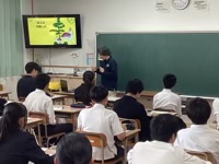 2年生は、ファストフードなどの身近な職業からIT系など具体的ににどんなことをしているかわからない職業まで、12の事業所より講師を招き、職業講話をしていただきました。仕事に就いたきっかけ、仕事の内容ややりがい、大変さなどを聞き、自分の生き方について考えていきました。様々な実体験を聞くことで、これから自分に必要なことを考え、できることは何かを見つめなおすきっかけとなりました。