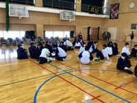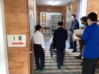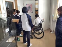 1年生の総合学習は、社会福祉協議会や大学の生徒さん、地域の事業所の協力を得て、車いす体験を実施しました。生活の様々な場面を想定し、実際に車いすに乗ったり、介助したりしました。当事者の気持ちや介助者の注意点を考えていきました。多くの協力者のおかげで生徒一人一人がしっかりと考えることができていました。