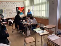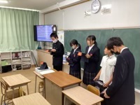 1年生は、2学期に学習し、実際に体験した福祉について、班ごとにタブレットにまとめました。まとめたことを各学級で交流し、意見を出し合いました。その後、クラスの代表を選出し多目的ホールで発表会をしました。どのクラスも体験することで障害を持っている方の気持ちを考え、これからのかかわり方を具体的に考えることができました。