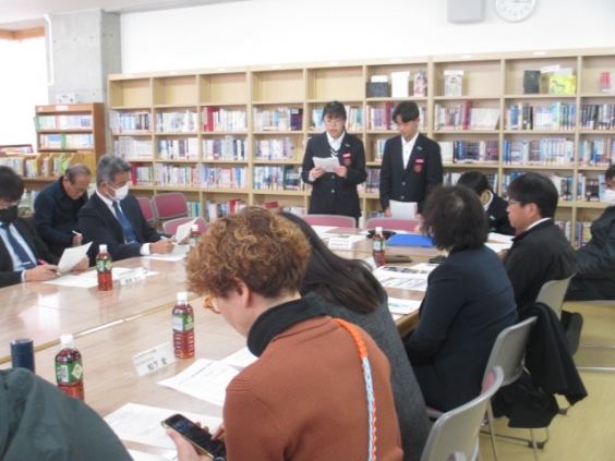 子どもも地域の誰もが安心して生き生き暮らせるまちを協働してめざす取り組みを話し合う、学校運営協議会を実施しました。宅峰中学校校区では、今年度、地域の力を借りながら防災・減災学習を実施してきました。今回の協議では、運営協議会のメンバーと生徒会3名を交えて意見を交わしました。経過報告の後、生徒側からは、これまでの経験で良かったことや提案などがありました。各委員からも、小中一貫を見据えた、自助・共助をどう進めたらいいか意見を出し合いました。