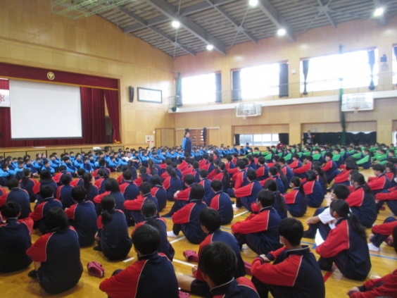 体育館において、新入生と2・3年生の対面式を行いました。