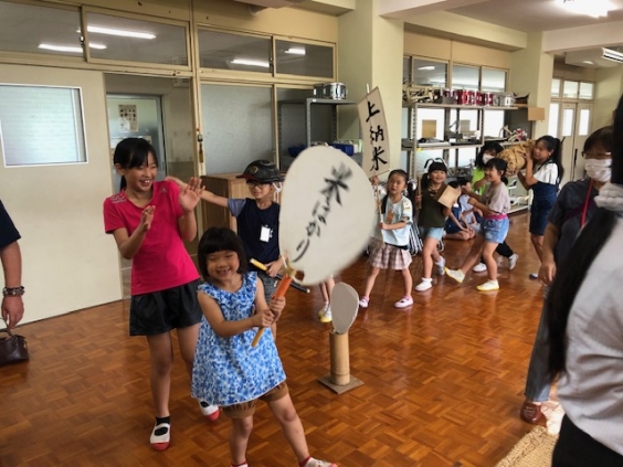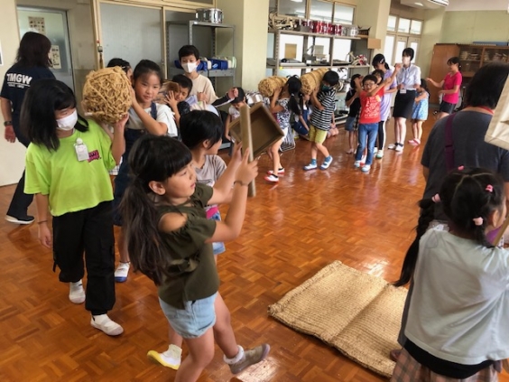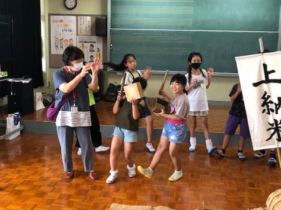 そんな「米はかり踊り」を、5年生以外でも、保護者の方々もつないでいこうという動きが出てきました。そのきっかけは、玉川子ども放課後塾です。4年ぶりに開かれる勝立大蛇山に、メインで踊りを披露する6年生と一緒に、子ども放課後塾の子どもたちやボランティアのみなさんで「米はかり踊り」をPRしようということになったのです。
